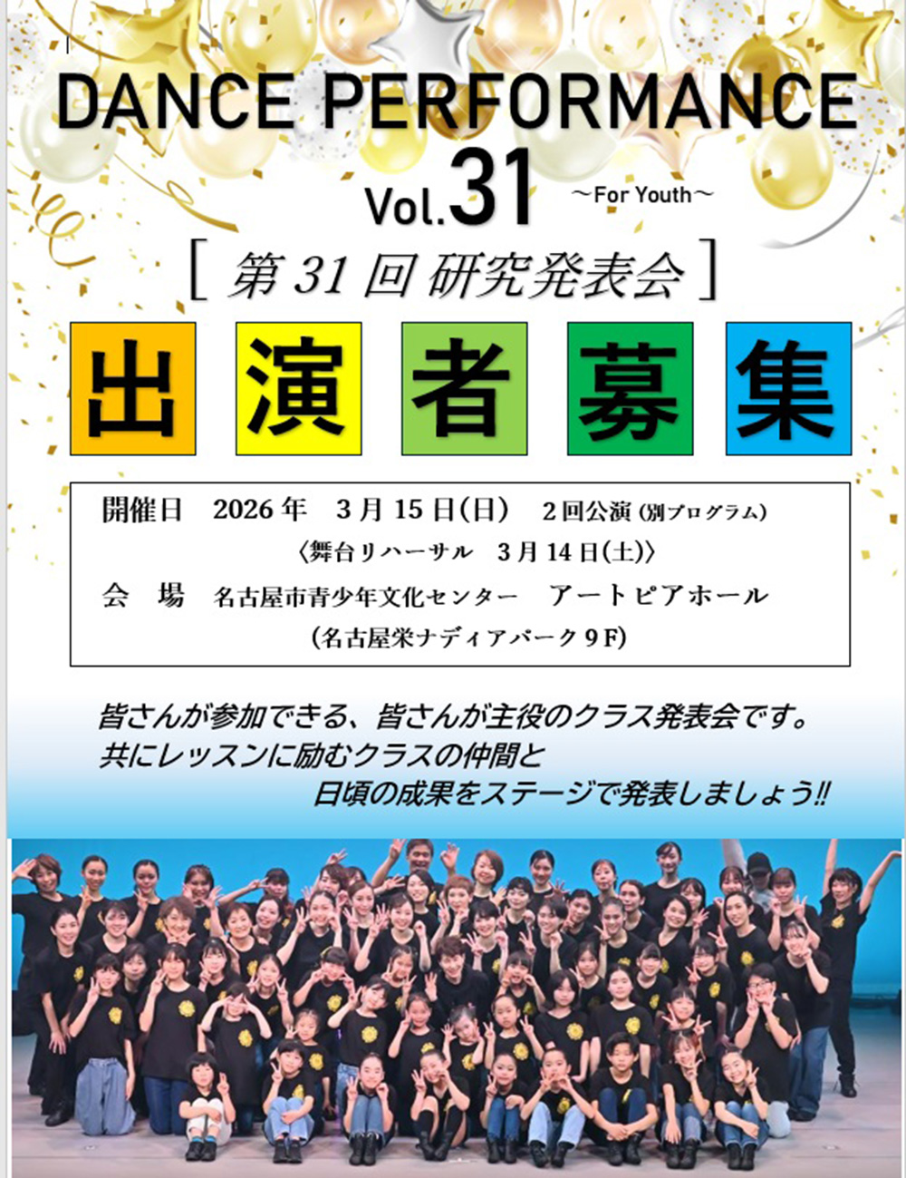 【DANCE PERFORMANCE vol.31 For Youth】 名古屋市青少年文化センターアートピアホールにて